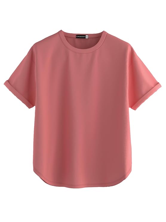 JUNEBERRY® Pure 100% Cotton Oversized Loose Fit Drop Shoulder Round Neck Boyfriend Fit Solid Half Sleeves T-Shirt for Women & Girls (Sizes: S to 2XL)