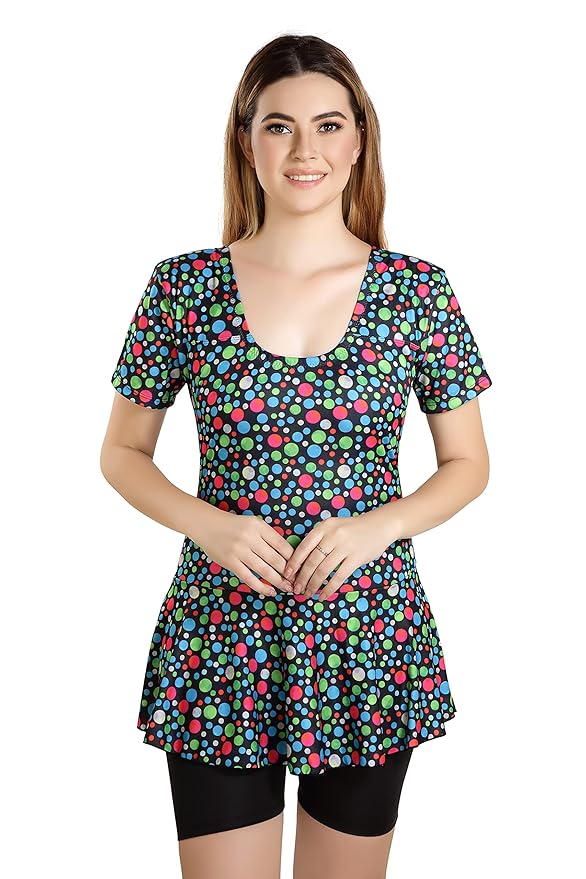 ROVARS Poly Jersy – Printed Swimming Costume for Women Frock Style [Half Sleeves – Half Length – Without Pads]
