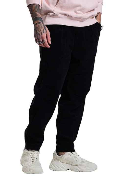 SNITCH Men Cargo Pants | Regular Fit Solid Pattern with Utility Pockets & Drawstring Waist | Durable Corduroy Polyester Fabric for Casual & Streetwear Use